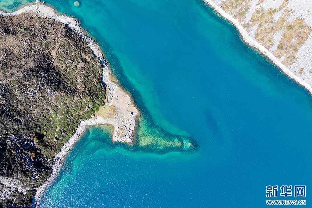 10月11日拍摄的白玛林错(无人机照片)。新华网 旦增努布 摄