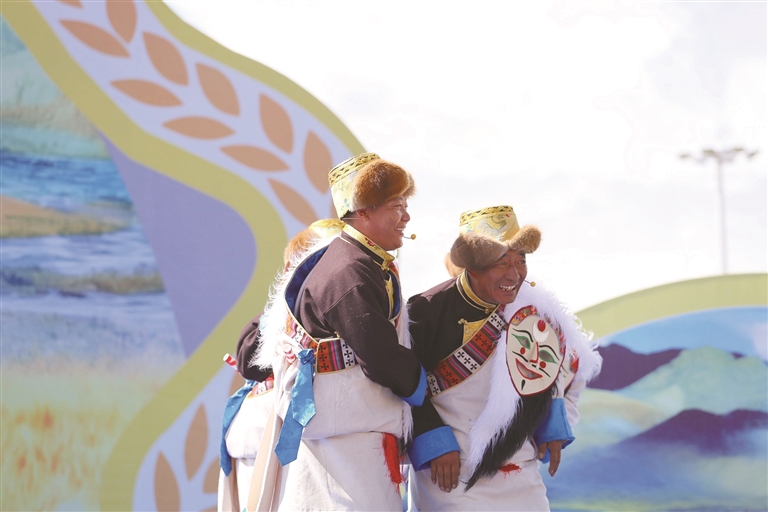 农牧民群众在表演节目。