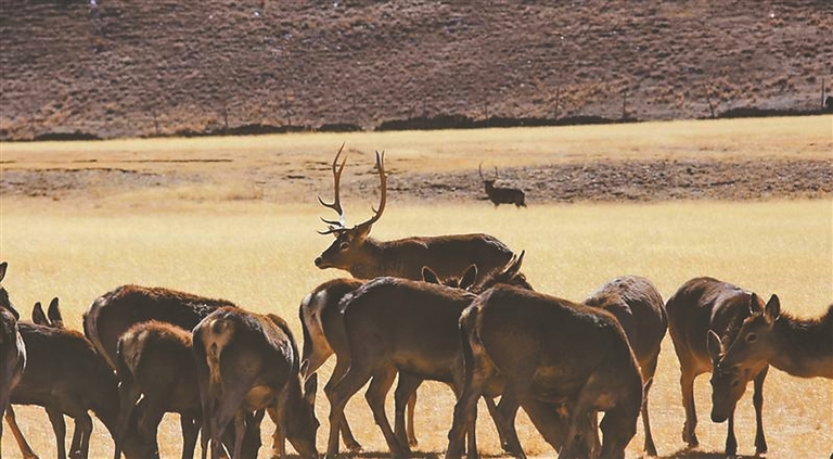 栖息在昌都市类乌齐县野生动物保护区的马鹿。记者 丹增群培 摄