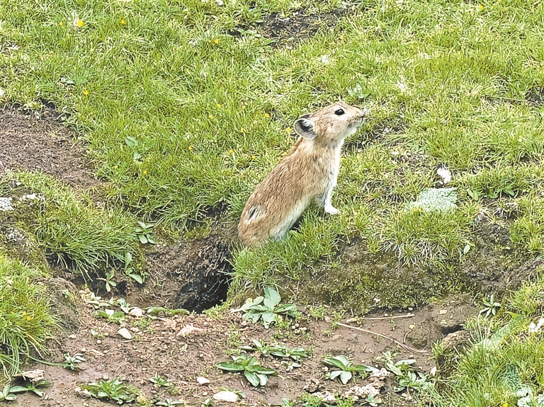 青藏高原特有物种高原鼠兔。记者 丹增群培 摄