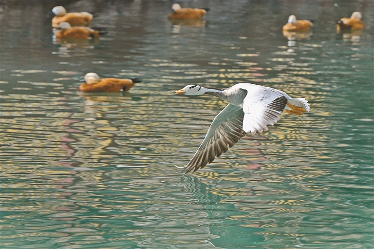 拉萨河畔的国家一级保护动物斑头雁。记者 唐斌 摄