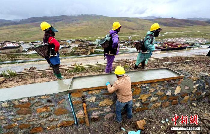 图为扎杂村牧民积极参与村里的防洪堤“以工代赈”项目建设。扎杂村驻村工作队 供图