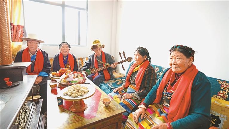 拉孜县热萨乡强公村群众在新居内共度重阳佳节。记者 旦增嘎瓦 摄