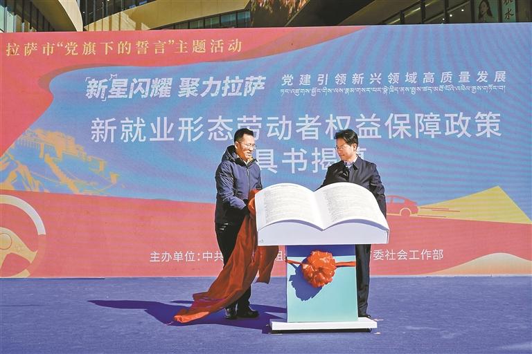 图为活动现场,《拉萨市新就业形态劳动者权益保障政策指引》首次亮相。记者 拉巴桑姆 摄