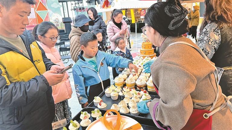 图为市民驻足选购蛋糕的热闹场景。记者 平措诺吉 摄