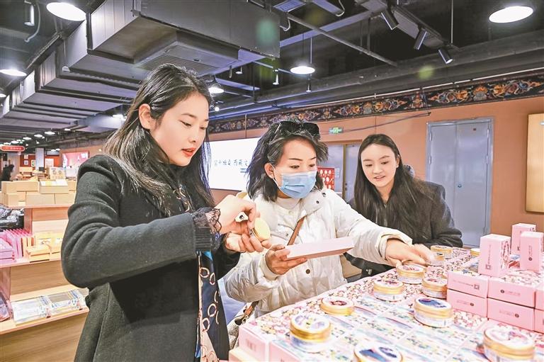 图为消费者在展示中心内购买特色产品。记者 杨小娟 摄