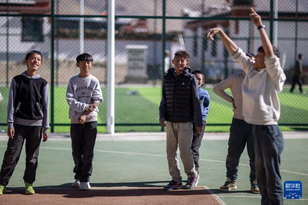 1月5日,少年在定日县长所乡森嘎村的篮球场打球。新华社记者 李键 摄