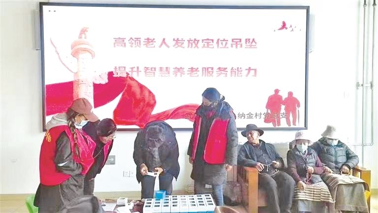 图为城关区为高龄老人发放定位吊坠。图/文 记者 刘琳琳
