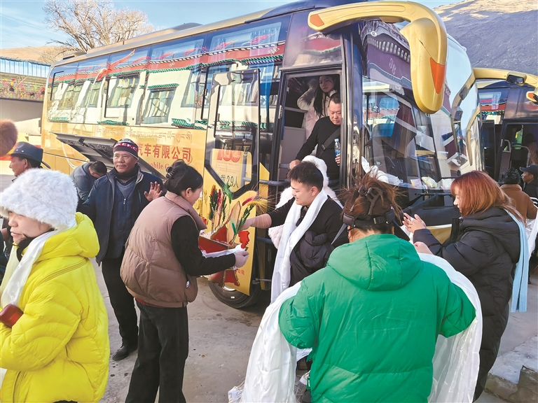 拉玉乡强吉村来自全国各地的“冬游西藏”百人团游客。
