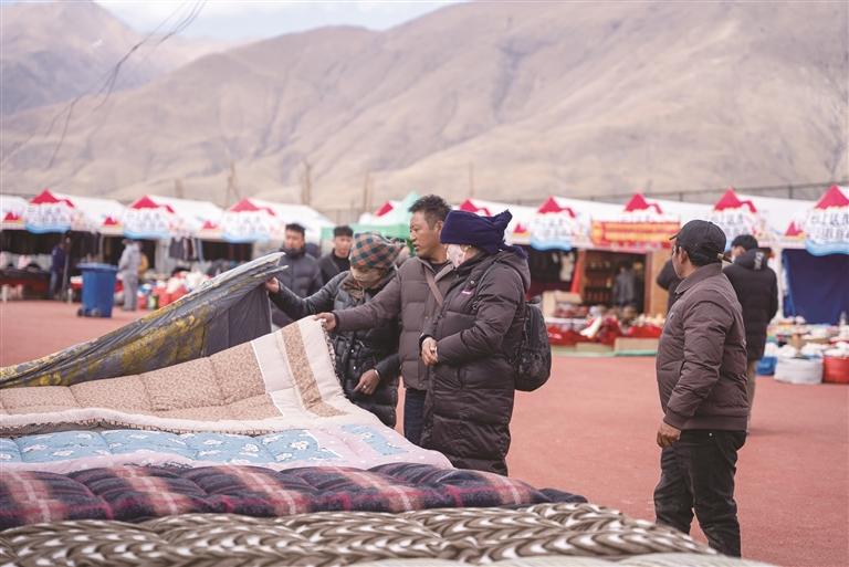 消费者正在挑选棉被。记者 阿旺尼玛 摄