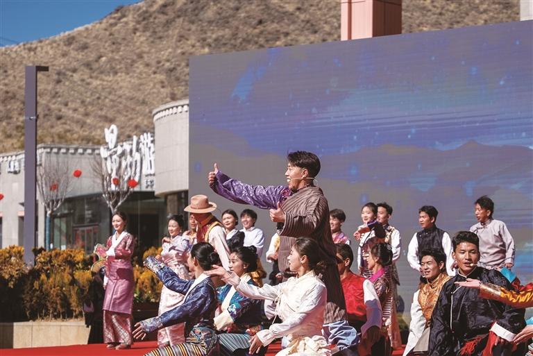 文艺展演环节精彩纷呈,10个精品节目轮番上演、亮点迭出。舞蹈《罗布日》《万马奔腾》气势恢宏,展现马年奋进姿态;女子群舞《石榴花开》寓意民族团结、同心向党的美好图景;男子群舞《迎亲》、少儿舞蹈《年代秀》、戏曲舞蹈《戏韵人生》各具韵味;乐器演奏《夏尔巴的歌声飞向天安门》《我的家乡日喀则》深情悠扬;相声《传统与现代》妙语连珠,在笑声中传递文化自信;原创歌曲《脉动堆龙》唱响区域发展活力;压轴舞蹈《万年吉祥》送上满满祝福,将现场气氛推向高潮。