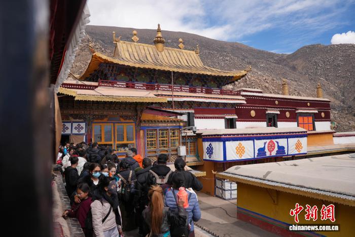 2月25日,藏历新年期间,西藏拉萨哲蚌寺迎来大批信众与游客。哲蚌寺始建于1416年,为藏传佛教格鲁派六大寺院之一,历史文化底蕴深厚,是重要的宗教文化场所。当日,不少信众和游客前来礼佛游览,感受寺院独特的人文氛围与宗教文化气息。图为哲蚌寺主供佛强巴佛。贡确 摄