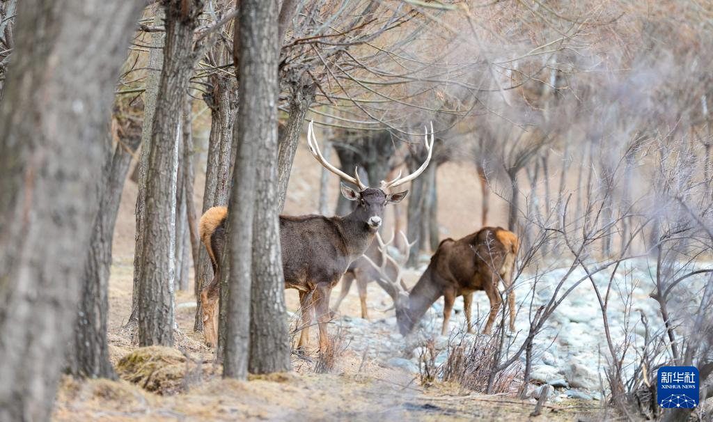 3月15日,在西藏山南市乃东区结巴村,国家一级保护动物白唇鹿现身觅食。随着当地生态环境持续改善、生物多样性保护力度不断加大,白唇鹿数量逐渐增加,成为高原生态向好的生动写照。