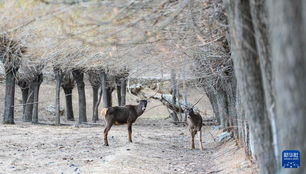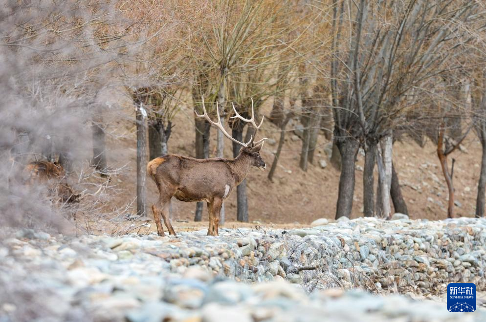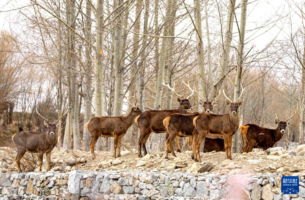 这是3月15日在西藏山南市乃东区结巴村拍摄的白唇鹿。新华社记者 晋美多吉 摄