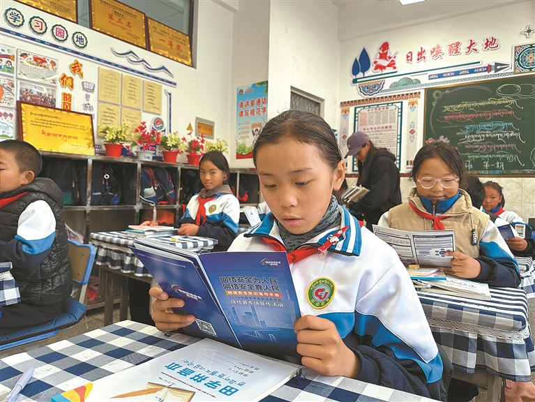 图为琼结县新时代文明实践中心理论宣讲志愿服务队走进琼结镇完全小学,向学生宣讲网络安全知识。记者 巴桑旺姆 摄