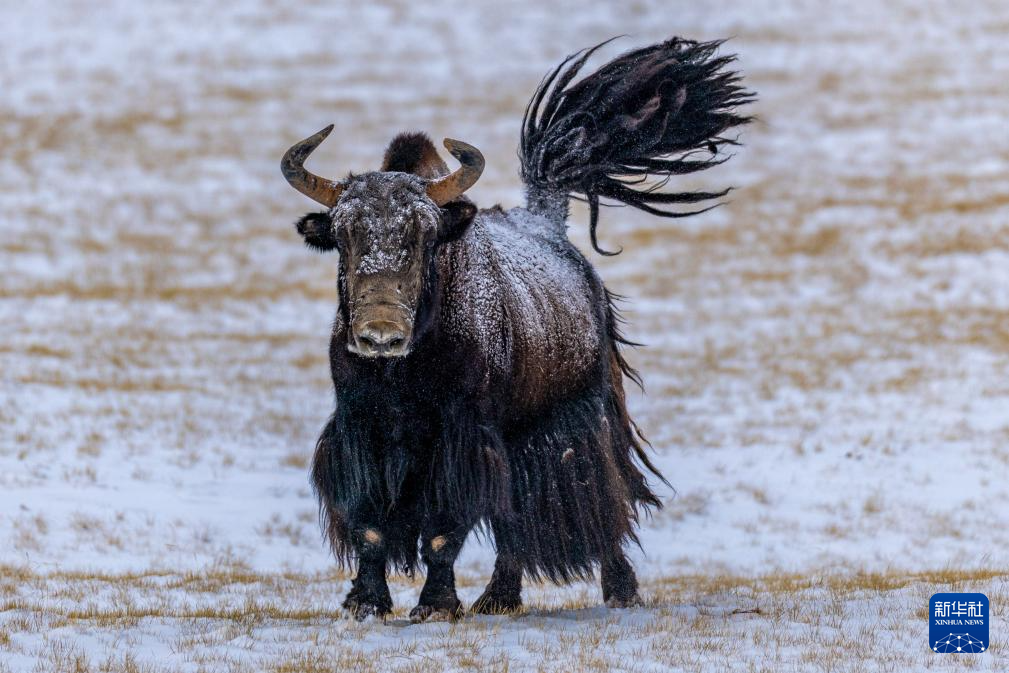 4月10日在“巴毛穷宗”地区拍摄的野牦牛。新华社记者 姜帆 摄