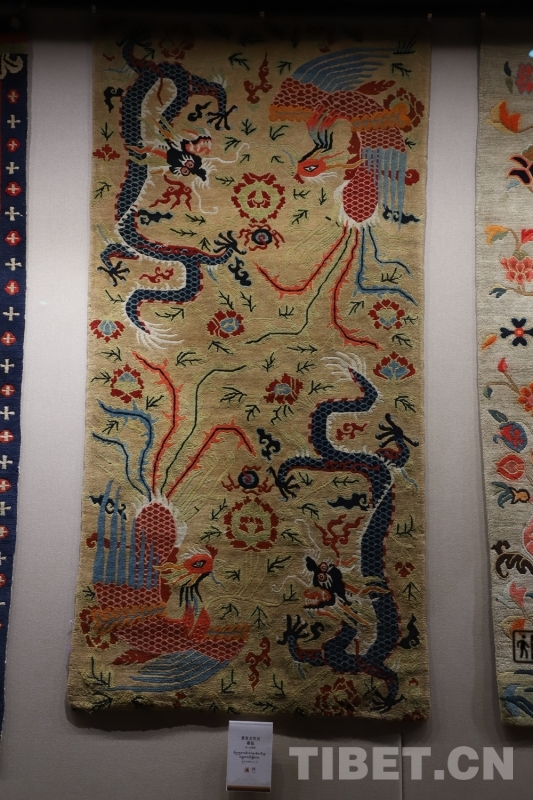 中国西藏网讯 近日,“喜马拉雅文化艺术精品展:千年荟萃·艺承古韵”在西藏唐卡艺术博物馆启幕。展览中,卡垫展区尤为引人注目,其上织就的“龙”“凤”“寿”等图案,生动体现了各民族文化的深度交流与融合。