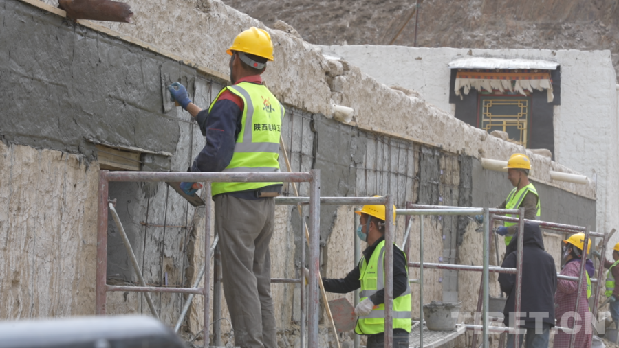 图为日喀则市定日县受灾民房维修加固施工
