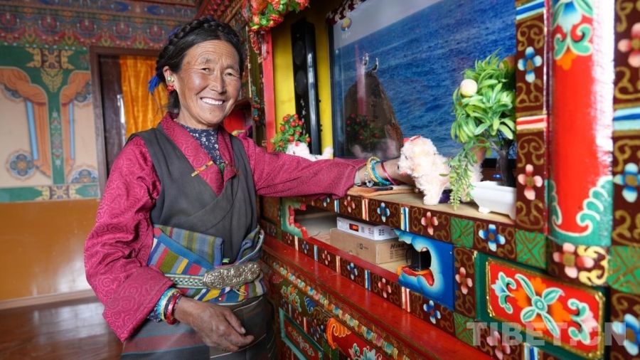 图为萨迦县雄麦乡曲堆村村民、藏戏队员白玛古入