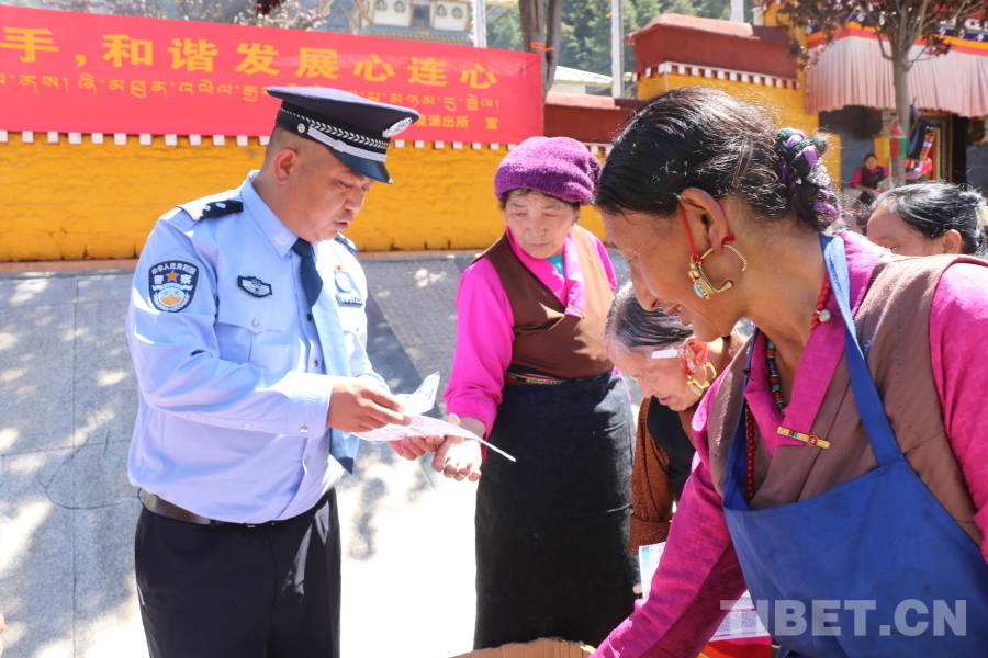 图为吉隆边境派出所民警为群众讲解党的二十届四中全会精神,介绍边境地区惠民政策