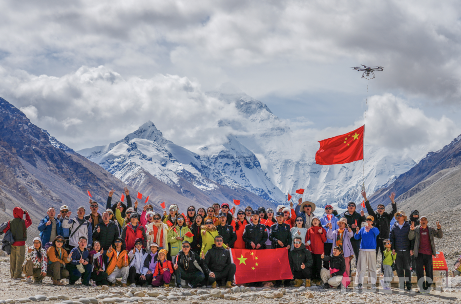 图为珠峰边境派出所民警在珠峰脚下和游客欢度2025年国庆节   摄影:叶轶