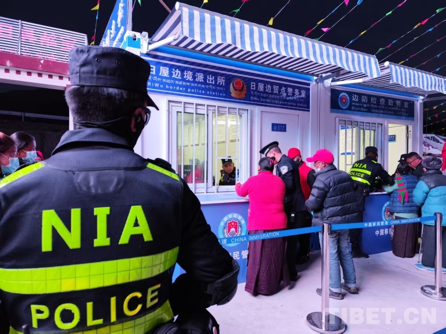 图为日屋边境派出所民辅警在日屋边贸点服务边民群众 摄影:张家豪