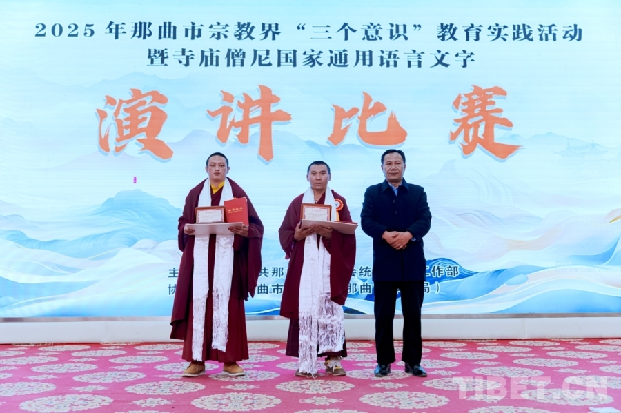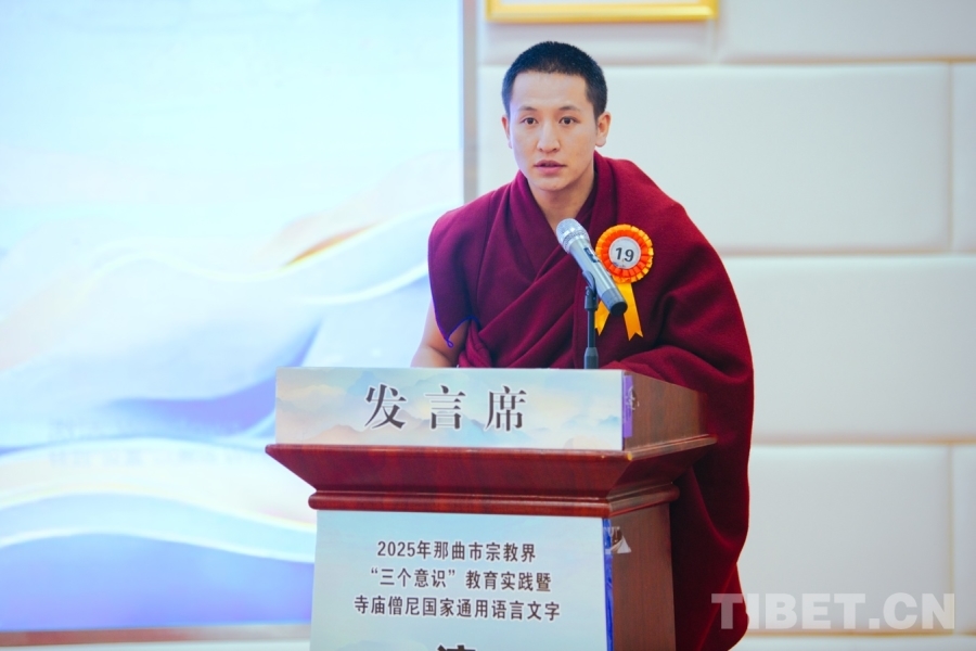 中国西藏网讯  11月13日,2025年那曲市宗教界“三个意识”教育实践暨寺庙僧尼国家通用语言文字演讲比赛举行。来自那曲市10县(区)的22名寺庙僧尼站在演讲台上,用流利的普通话畅谈学习心得、分享家乡发展变化。