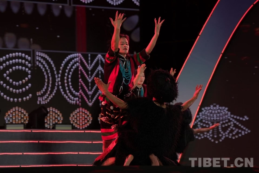 《珞巴汉子》通过男子群舞的豪迈气势,将“山林之子”守护雪山的坚韧、驰骋林间的洒脱展现得淋漓尽致,每一个踏步、每一次挥臂都透着边疆儿女的精气神。