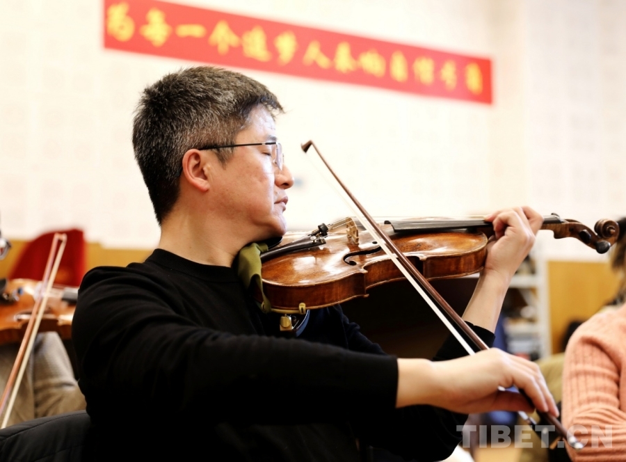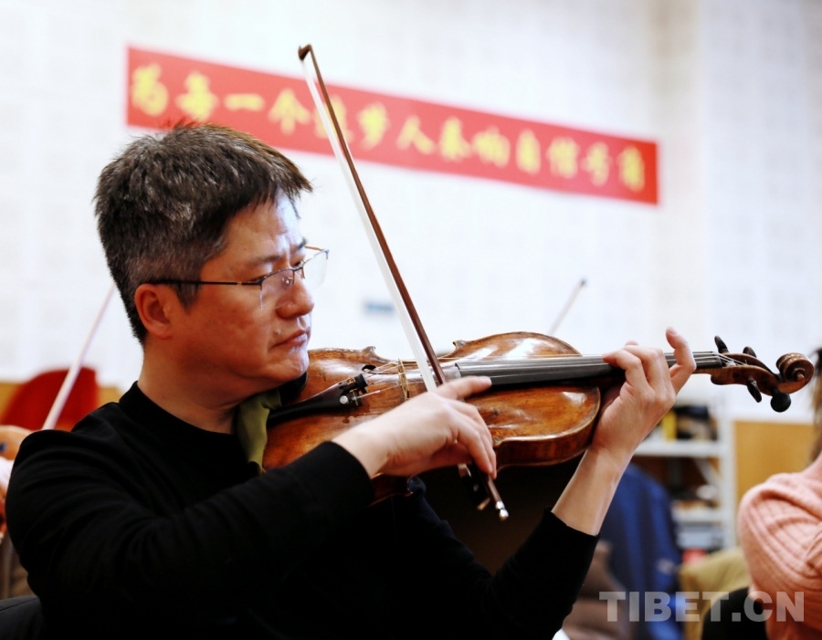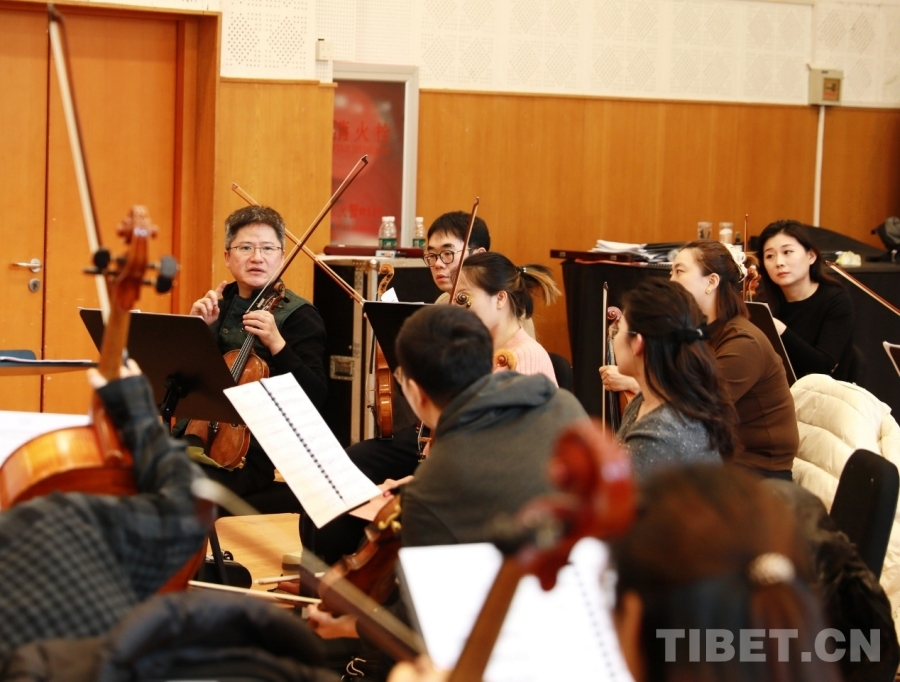 图为中央歌剧院交响乐团首席杜玄正在排练大型交响组曲《梦·路》 摄影:刘莉