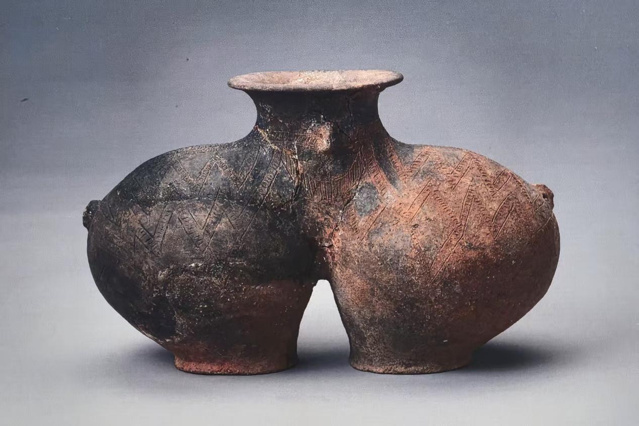 西藏昌都卡若遗址里出土了一只大约距今5000年的陶罐,它造型独特、纹饰精美、色彩深邃,展现了高原先民极高的彩陶技艺,这便是如今西藏博物馆的标识原型——朱墨彩绘双体陶罐。