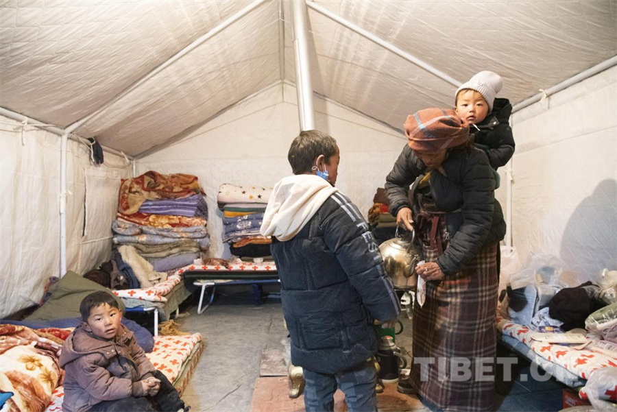 图为图为地震发生第四日,在定日县长所乡杂村受灾群众安置点内受灾群众取暖、照明、过夜均有保障,当天夜晚气温达到零下二十度(摄于2025年1月10日) 摄影:赵振宇