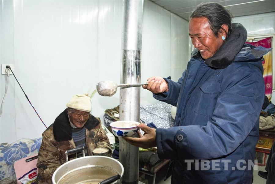 图为在定日县长所乡古荣村安置点内,解放军官兵为受灾群众提供一日三餐(摄于2025年1月11日) 摄影:赵振宇