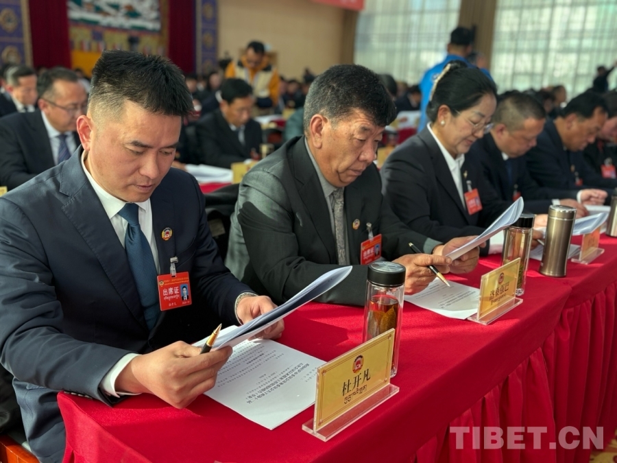 拉萨市政协主席江拥洛追代表政协第十二届拉萨市委员会常务委员会向大会作工作报告。