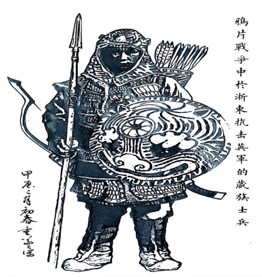 清廷此次征调的军队中,有一支来自四川西部地区的屯兵,共计1000余人。他们由阿木穰(藏族,今四川省阿坝州金川县人,金川八角碉屯世袭土司、大金河千总,加副将衔,获巴图鲁勇号)、喀克哩(藏族,今四川省阿坝州金川县人,瓦寺土守备)率领,日夜兼程、星夜驰援,顺利抵达浙东抗英前线,被编入四川营参将王国英部。此外,另有一部分藏族士兵在索文茂(瓦寺土舍)的率领下,编入陕甘军将领朱贵麾下。这批藏族屯兵个个魁梧健壮,均头戴斑斓虎皮帽,长长的虎尾垂于脑后,神情威武、气势昂扬,煞是威风。