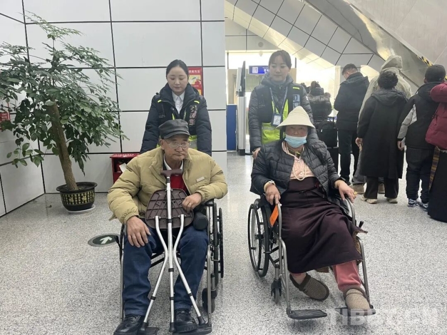 “邦锦梅朵”班组成员陪护行动不便旅客