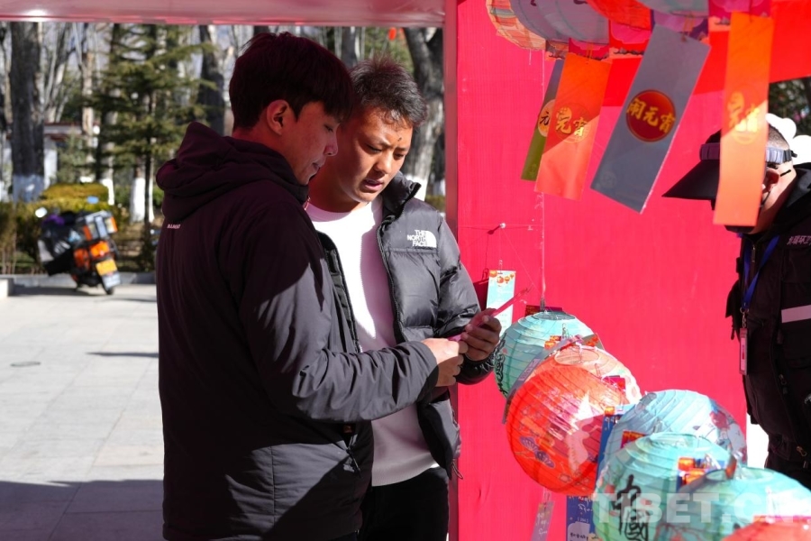 拉萨市龙王潭公园,群众在元宵活动现场兴致勃勃地猜灯谜 摄影:张艺彤