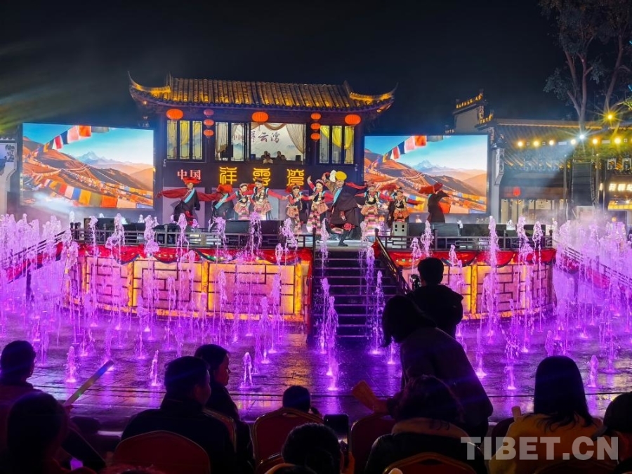 昂仁县民间艺术团在祥云湾文旅景区音乐喷泉舞台上表演