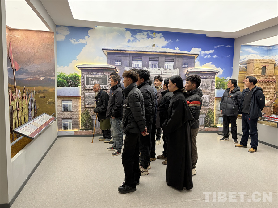 烈士陵园陈列馆内陈列着大量历史图片、文献资料和烈士遗物。大家边走边看,不时停下脚步仔细端详,互相交流感受。大家通过一件件革命文物、一幅幅泛黄的历史图片和一段段翔实的文字资料,全面了解了西藏和平解放以来波澜壮阔的光辉历程,深刻体会了无数共产党人、革命先烈为西藏革命和建设事业前赴后继、无私奉献、扎根高原的崇高精神,深切感受到西藏民主改革67年来翻天覆地的历史巨变。
