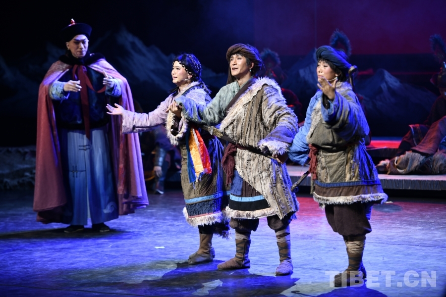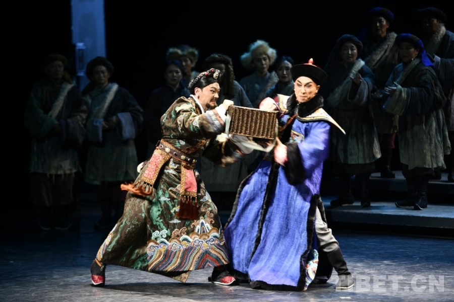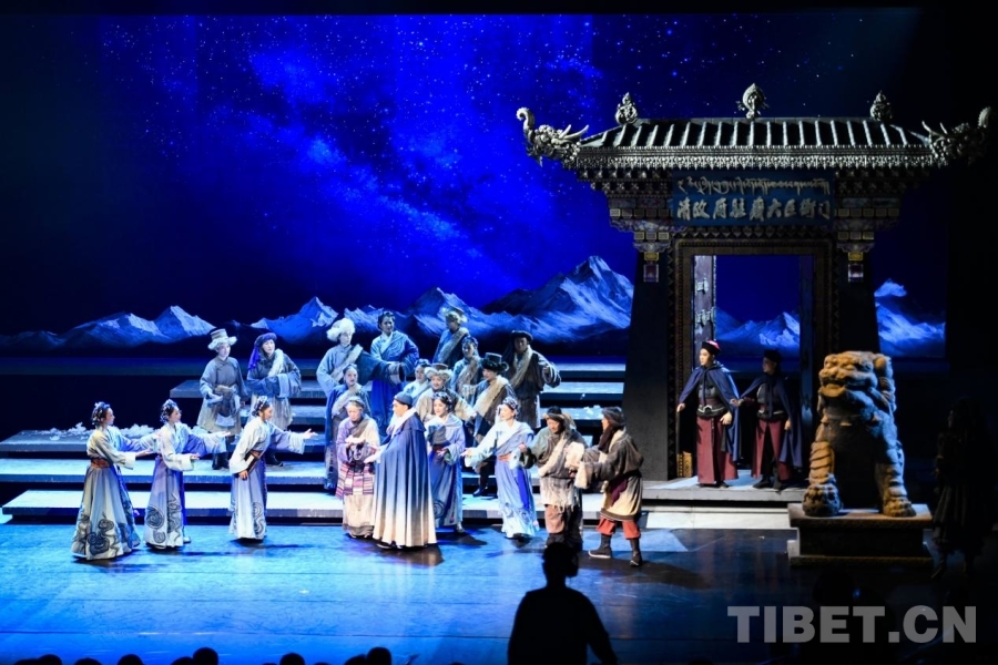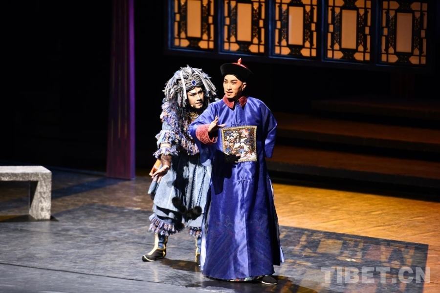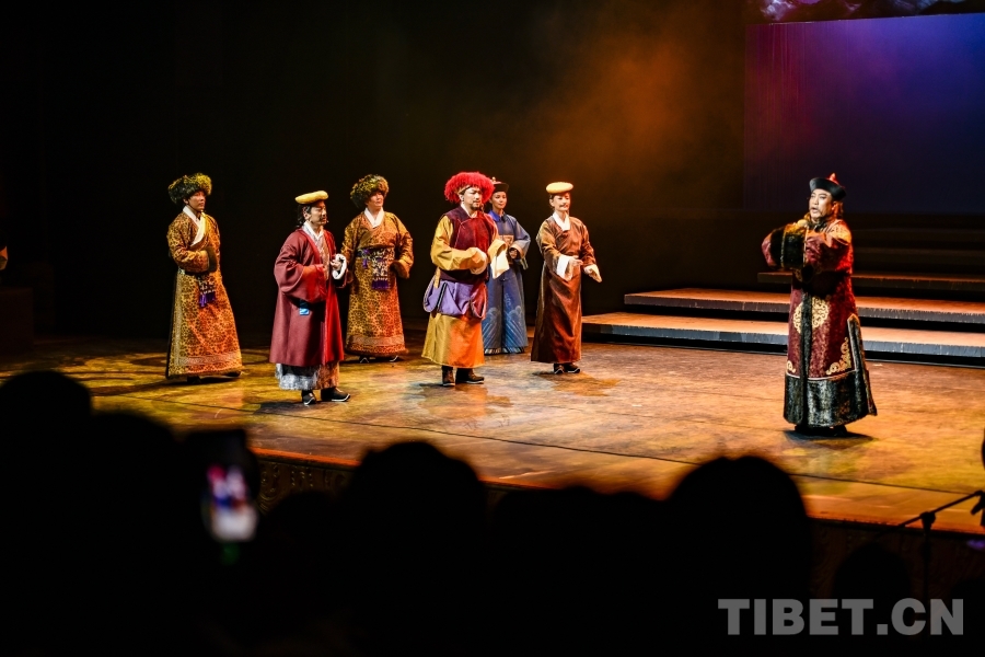 中国西藏网讯 4月2日、3日,由西藏自治区藏剧团与广东粤剧院历时近两年、首度联袂打造的原创大型史诗剧《驻藏·张大人》,连续两日在西藏自治区藏剧团藏戏艺术中心演出。全剧时长130分钟,以清末广东籍驻藏帮办大臣张荫棠治藏历程真实历史为蓝本,讲述了在英军入侵西藏的危局之下,张荫棠自请入藏,以“吾当做吾当做之事”“吾当承吾当承之责”“吾当尽吾当尽之心”的誓言与担当,守护国家主权、推动边疆发展的故事。(中国西藏网 记者/赵振宇)
