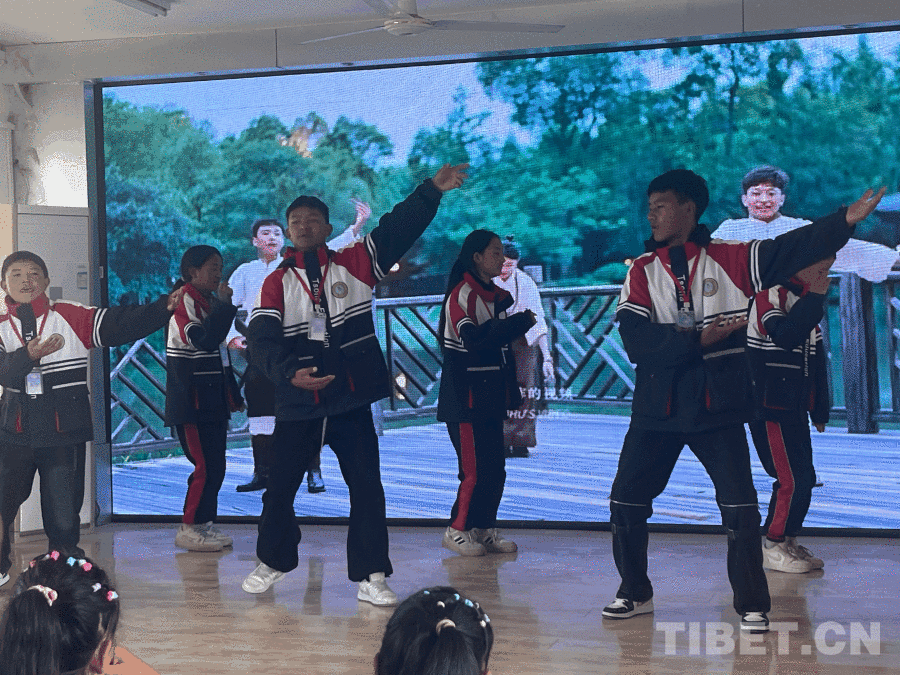 在“文化共赏·相知相融”环节,大屏首先播放了西藏错那市的宣传片,壮美的雪山、湛蓝的天空让孩子们惊叹不已。随后,西藏的孩子们跳起欢快的锅庄舞,拉巴顿珠同学献上精彩的独舞,赢得阵阵掌声。