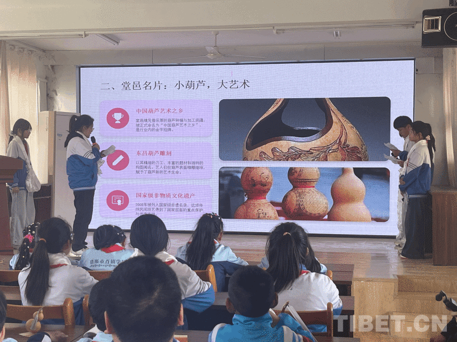 聊城的孩子们则当起“小导游”,向新朋友介绍家乡。堂邑镇是一座有着1400多年历史的古镇,古称“白雀城”。这里还是全国有名的“葫芦之乡”,东昌葫芦雕刻是国家级非物质文化遗产,全国70%以上的工艺葫芦产自这里。孩子们还深情讲述了孔繁森爷爷的故事——他两次进藏、献血抚养藏族孤儿、去世时身上仅剩8元6角钱……台下的西藏孩子听得格外认真。