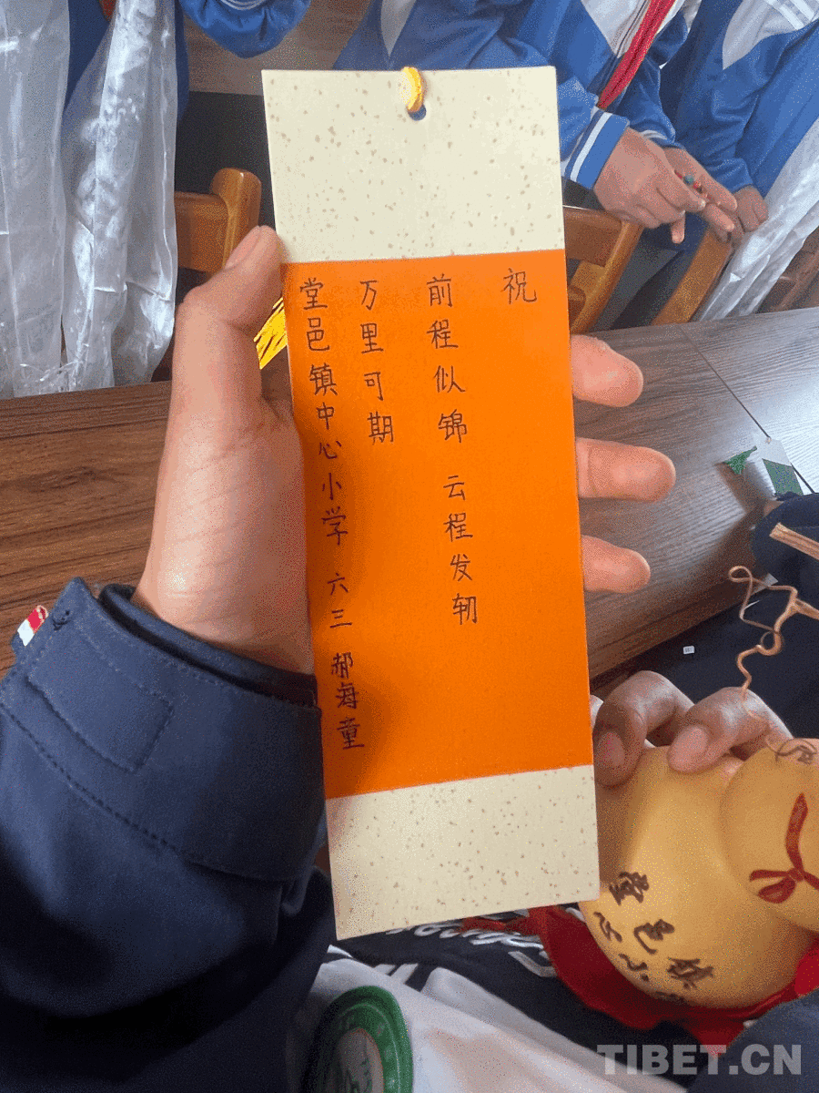 在“同心寄语”环节,聊城的孩子们在“民族团结心愿卡”上认真写下祝福和心愿,连同精美的葫芦一起赠送给西藏的小伙伴。葫芦寓意“福禄吉祥”,心愿卡上写满了温暖的话语。