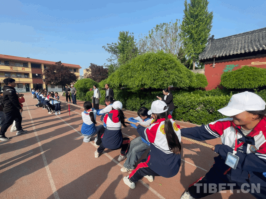 中国西藏网讯 跳一曲锅庄舞、写一张心愿卡、赛一场拔河——4月23日下午,山东省聊城市东昌府区堂邑镇中心小学(又称繁森希望小学)校园里欢歌笑语、暖意融融。来自雪域高原的48名中小学生,与繁森希望小学六年级48名学生开展了一场别开生面的“手拉手”联谊活动。