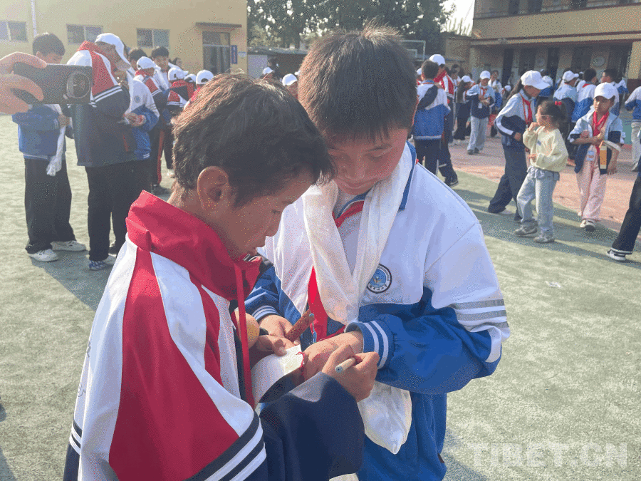 联谊结束后,因暂时没纸,拉萨和聊城的孩子们在彼此的手上留下联系方式