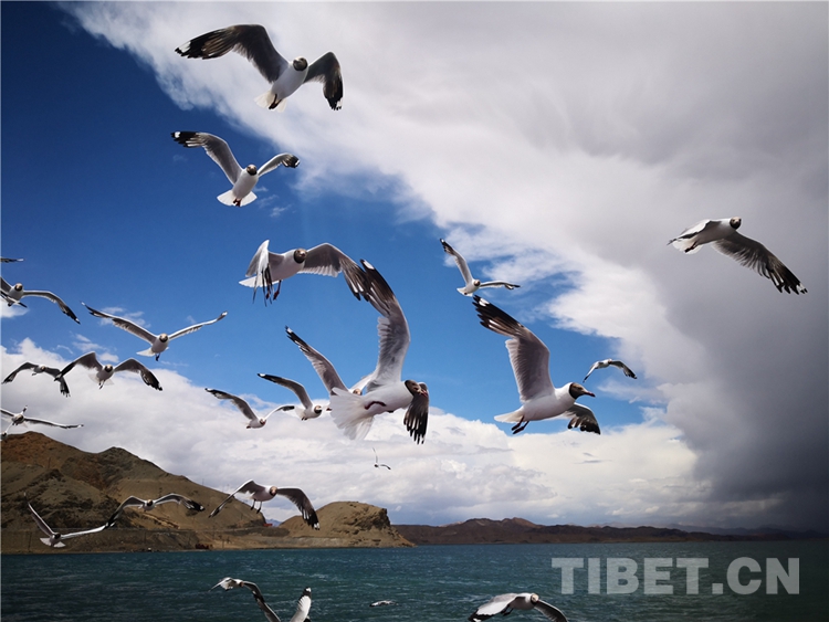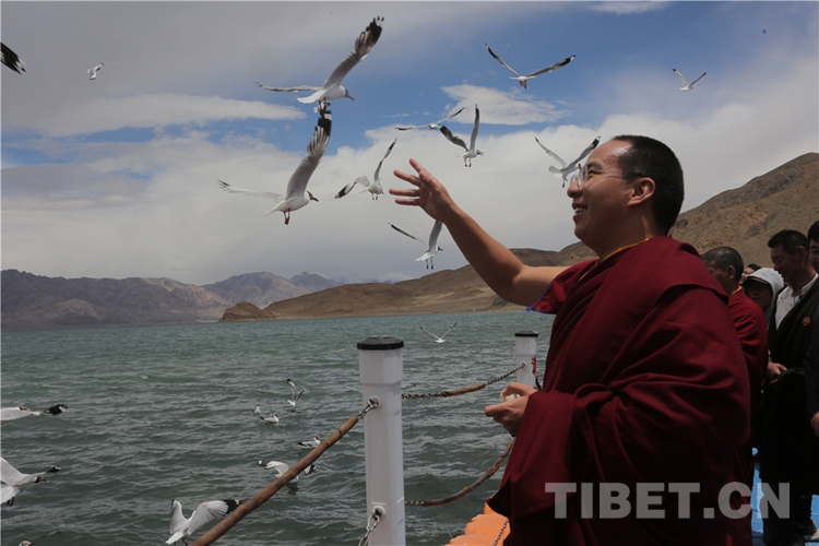 7月26日,十一世班禅观览班公湖,考察生态保护情况。置身于蓝天绿水和湖光山色中,观看鸟儿展翅飞翔和低空盘旋,聆听美妙的鸟鸣声,让人感受到人与自然、与动物和谐相处的温馨场景。
