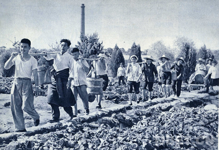 图为学校师生同劳动