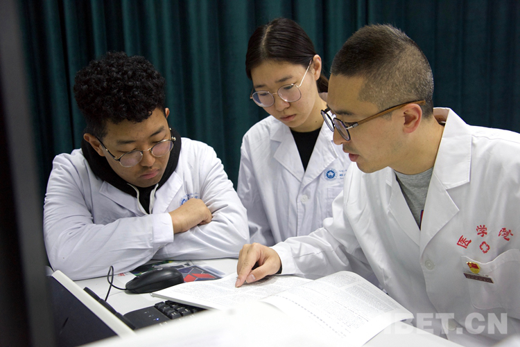 图为西藏民族大学医学部教授童晓鹏指导论文 摄影:王媛媛