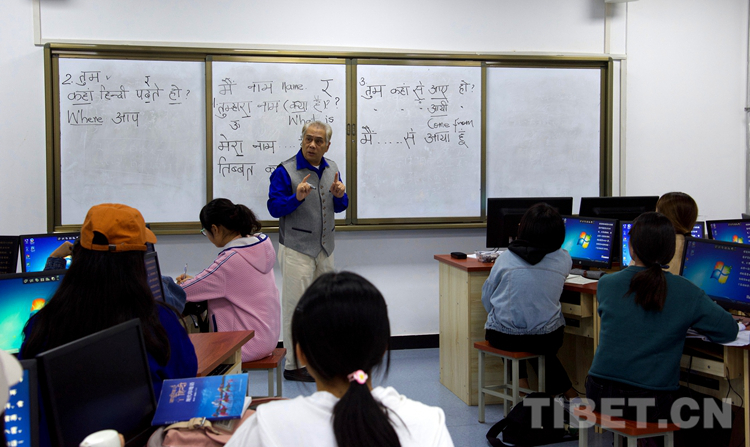 图为西藏民族大学外语学院印地语专业教师王金峰正在给学生们上印地语口语课 摄影:王媛媛