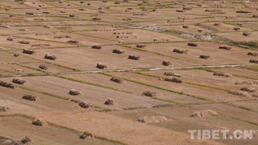 图为田间地头成堆的青稞 摄影:德吉卓玛