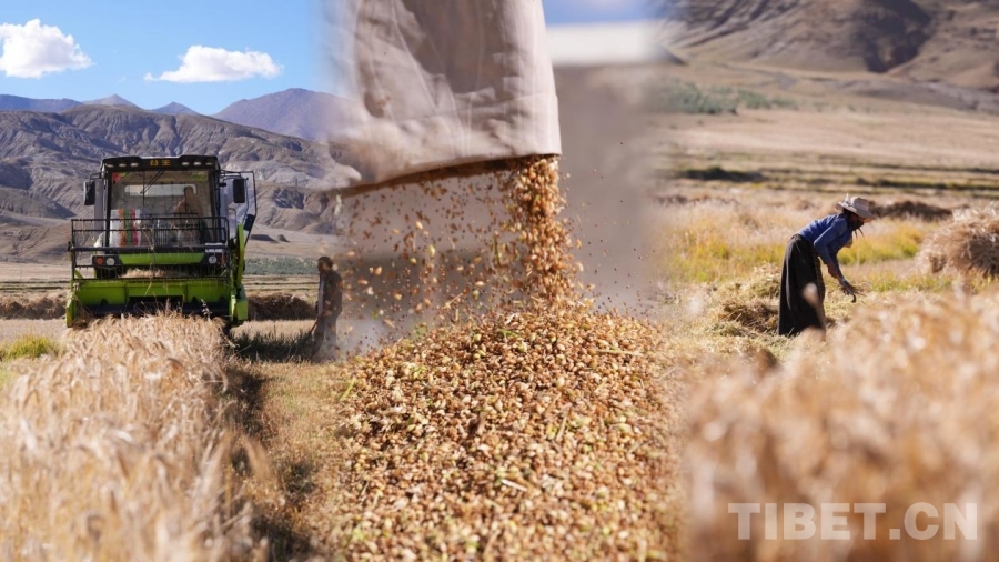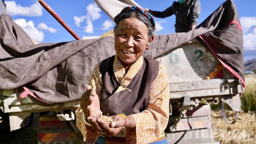 在60岁的村民巴桑家,这位见证了西藏一甲子变迁的老人感慨道:“我年轻时,秋收是件大事。大家要提前准备食材,邀请亲友帮忙,甚至在城里工作的儿女都要过来帮忙。如今农业实现了机械化,繁忙的秋收变成了寻常劳动,三四天就能完成过去半个多月的工作。”他望向远方金黄的田野,“西藏自治区成立60年来,在中国共产党的领导下,我们的生活发生了翻天覆地的变化。作为亲历者和受益者,我倍感荣幸。”